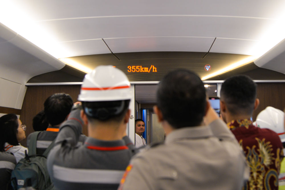 22日6月,测列车运转时速初度到达350公里印度尼西亚雅万高铁联调联试归纳检。摄显示列车时速的电子屏这是记者和事务职员拍。者 徐钦 新华社记摄